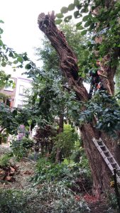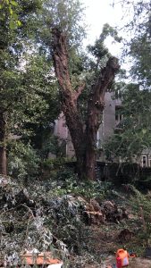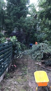 Het eerste wat er moest gebeuren van een oerwoud van bomen en struiken weg ruimen.
