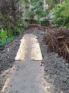 Vervolgens kan er met de opbouw begonnen worden door de tuin uit te vlakken en het uitzetten van hoogtes en maten.