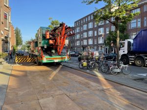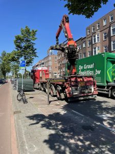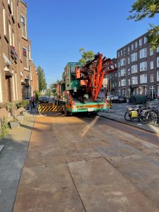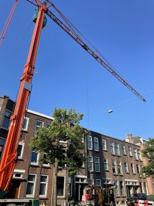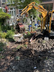 De aanleg van deze tuin achter het herenhuis te Rotterdam Delfshaven ging allemaal over de woning heen.