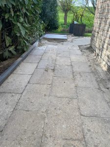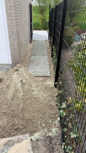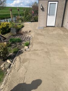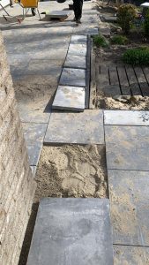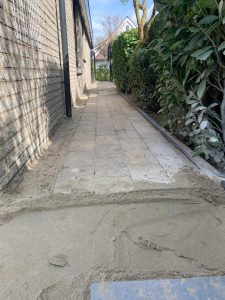• Oude bestrating vervangen door betontegels en keramische tegels